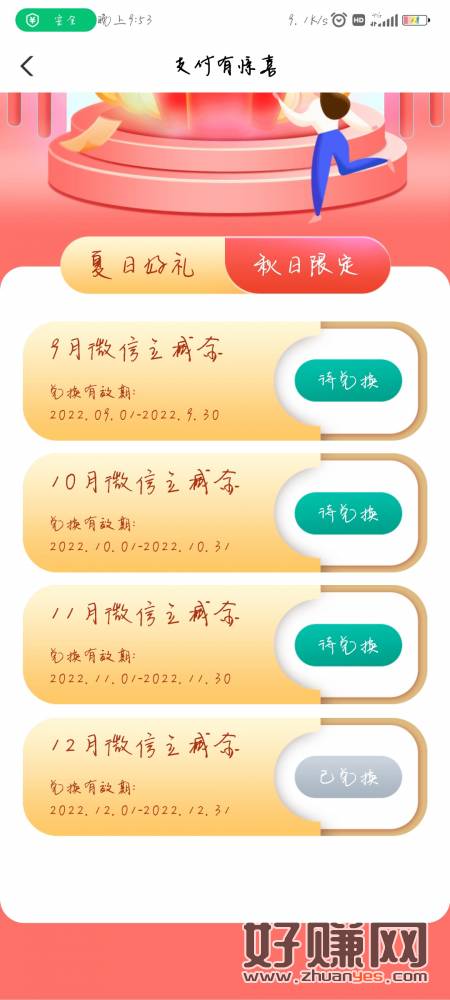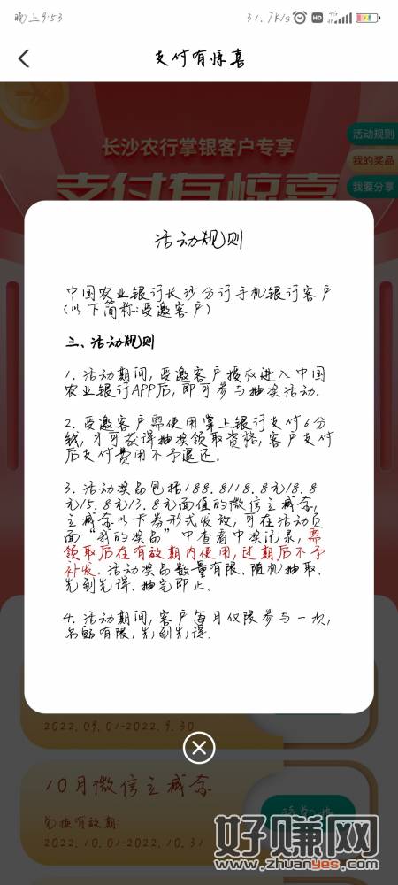 在湖南没走的或者飞湖南去试试,城市专区选长沙,下拉找到月月享好礼这个活动,进去支付12月份的6分钱最低领3.8。活动写的是受邀,但我没有收到短信也可以领,你们自己去试试看