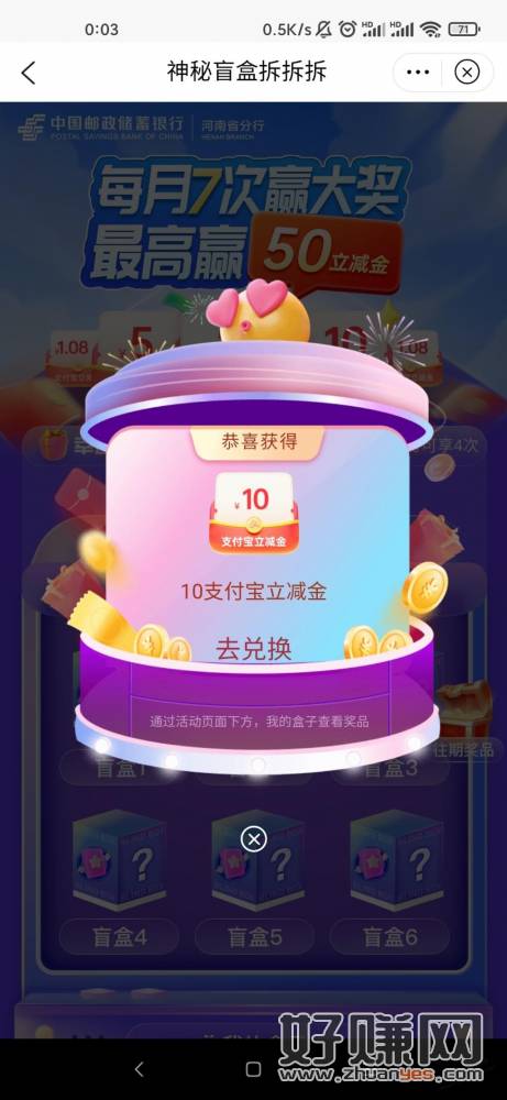 河南卡,邮储银行app,我的活动中心,签到抽奖!第一排第二个