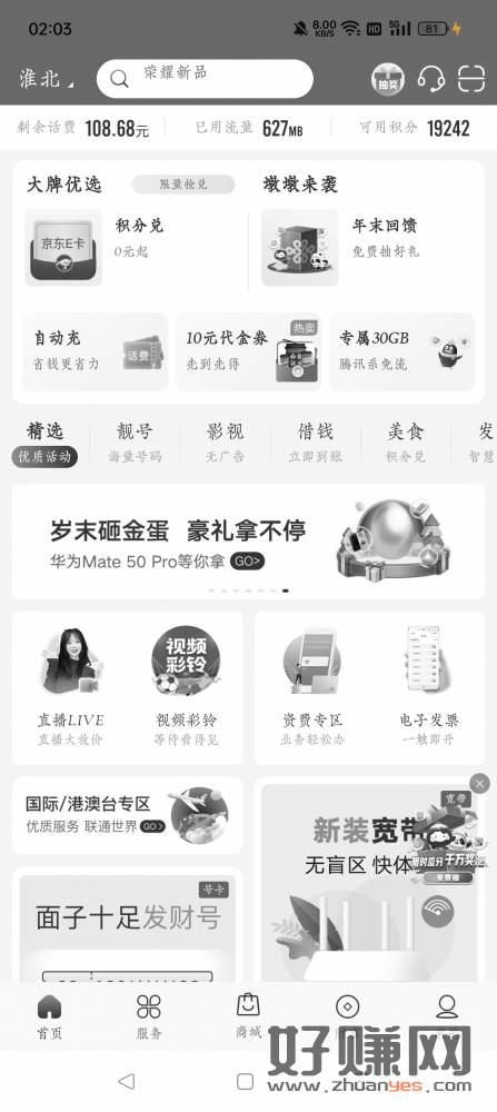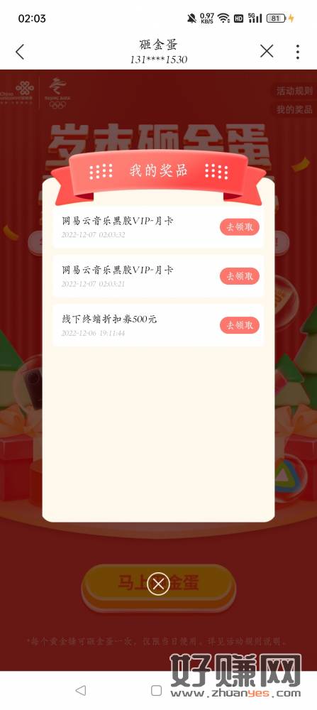 联通首页下拉砸金蛋,能抽的去抽,刚中两张黑胶月卡