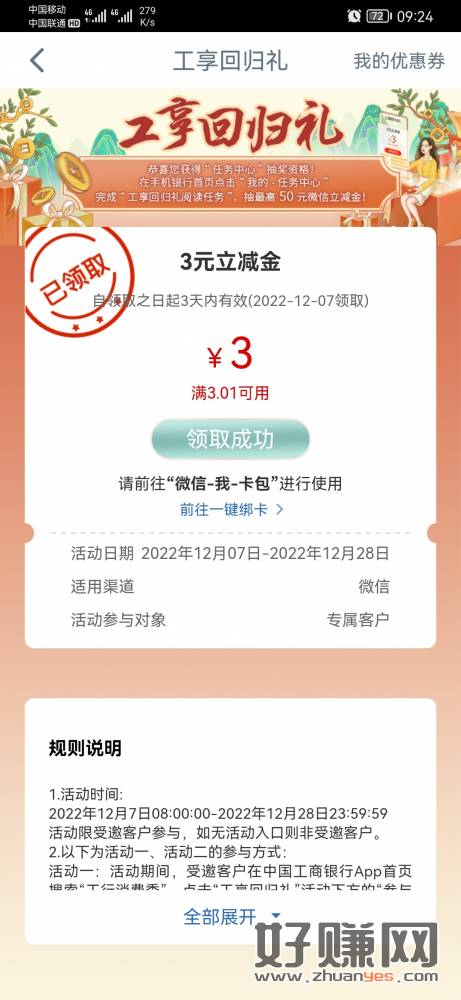 快 山东工行 任务中心 悦享星期五 8.88数币红包