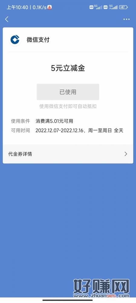 这两天发现只要没帮过建行卡的微信,首绑得5元立减金,一个实名