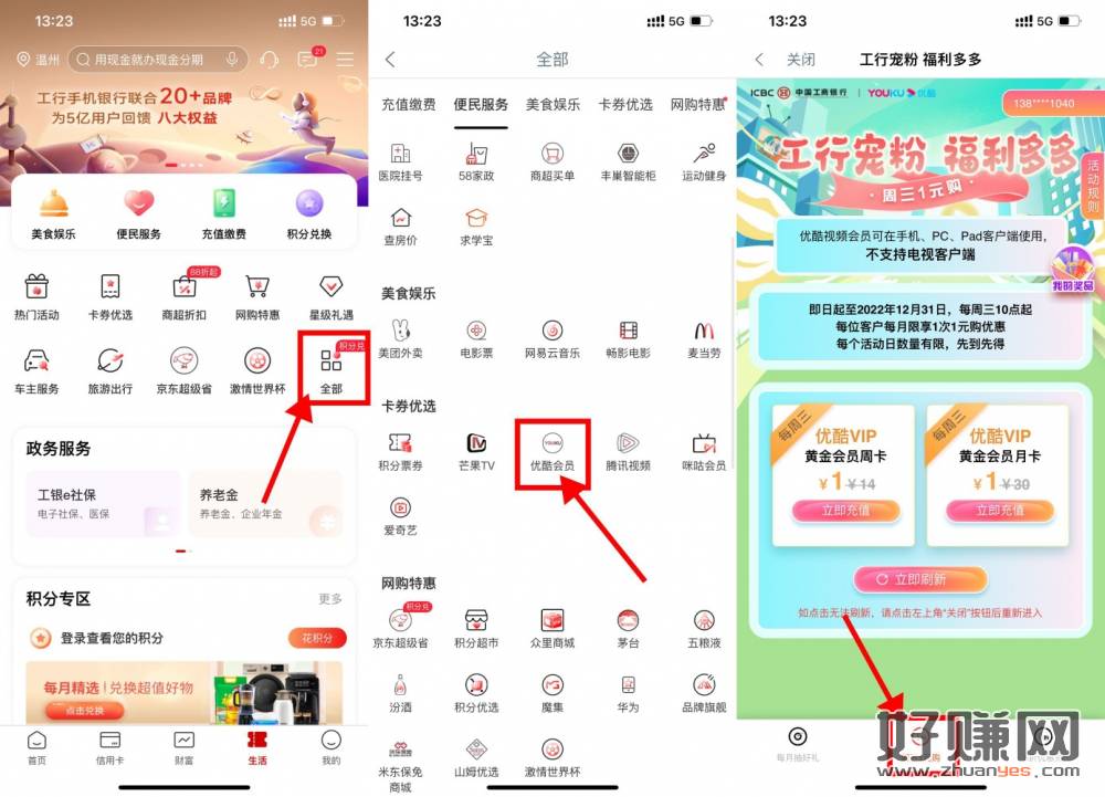 【工行周三1元购优酷会员月卡】新一期!工行APP底部“生活”->全部->优酷会员->底部“周三1元购”->直接1元开优酷会员月卡