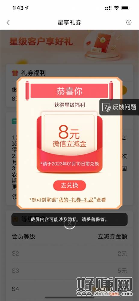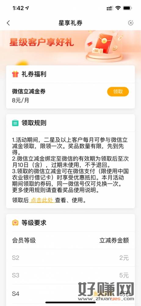 农行app-我得头像旁边星级进入下拉领取星级福利