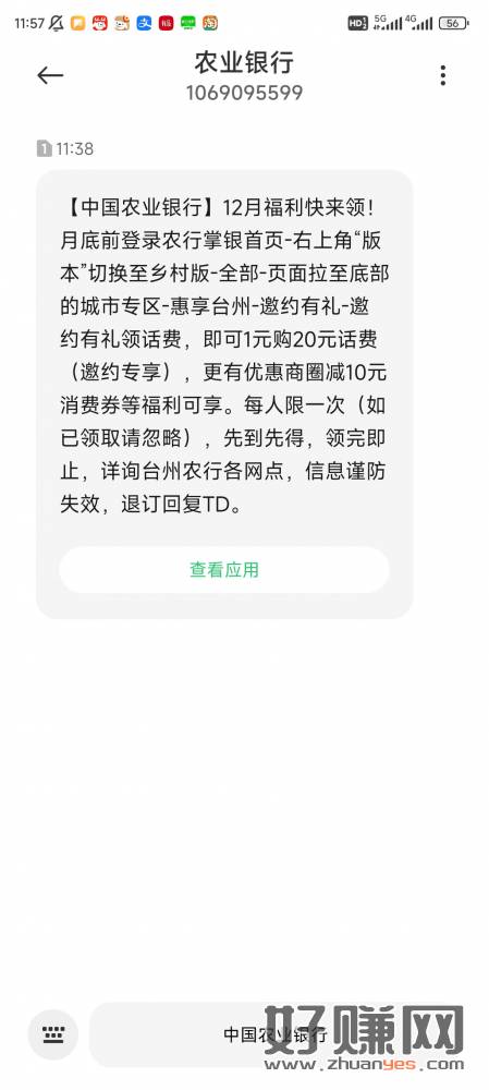 老农飞浙江台州 1块购20元话费 速