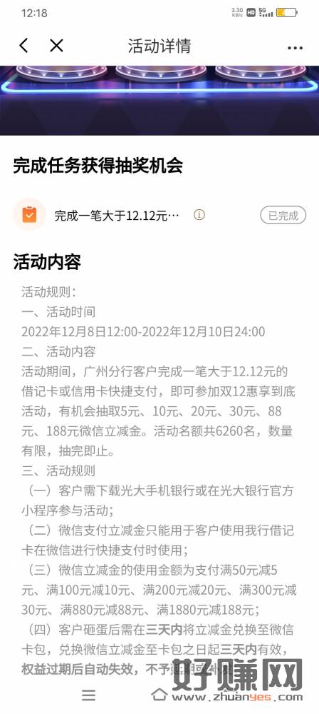 光大银行活动双十12弹一弹限置广州用户。有条件试一下我只抽了