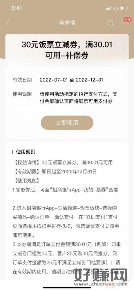 30元饭票立减券,xyk卡支付的可谈心换成25刷卡金,等于昨天的半价饭票免单了