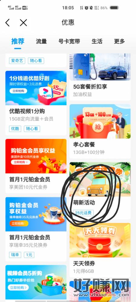 中国移动10话费 中国移动-热门活动-下拉找到如图!