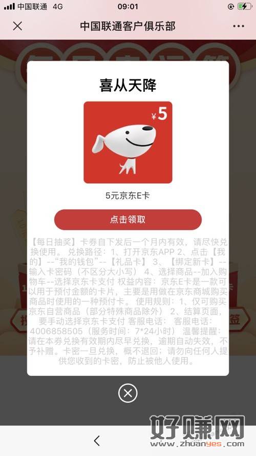 公众号。中国联通客服。左下特色专区,每日幸运签
