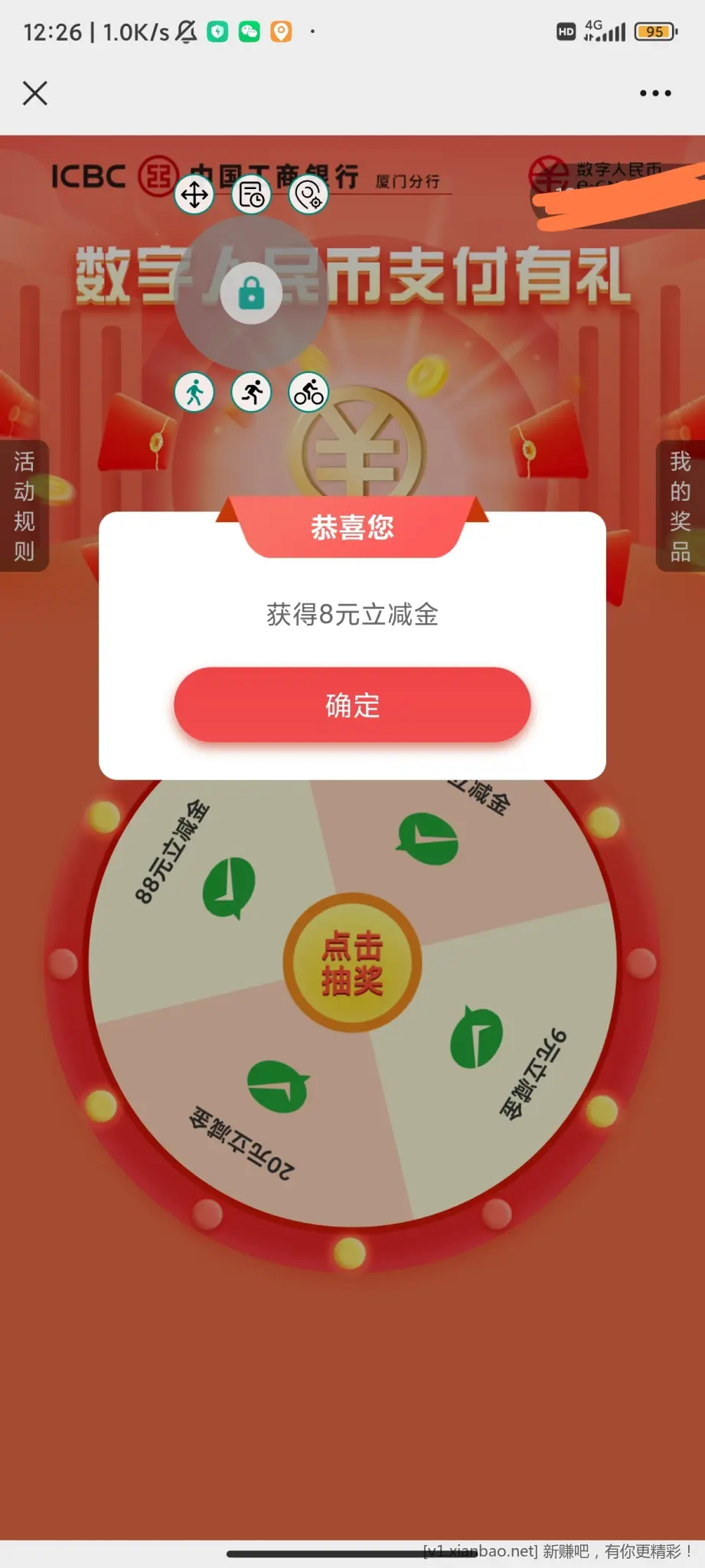 虚拟厦门 限厦门卡,工行数币支付0.01抽奖,必中8,最大88
