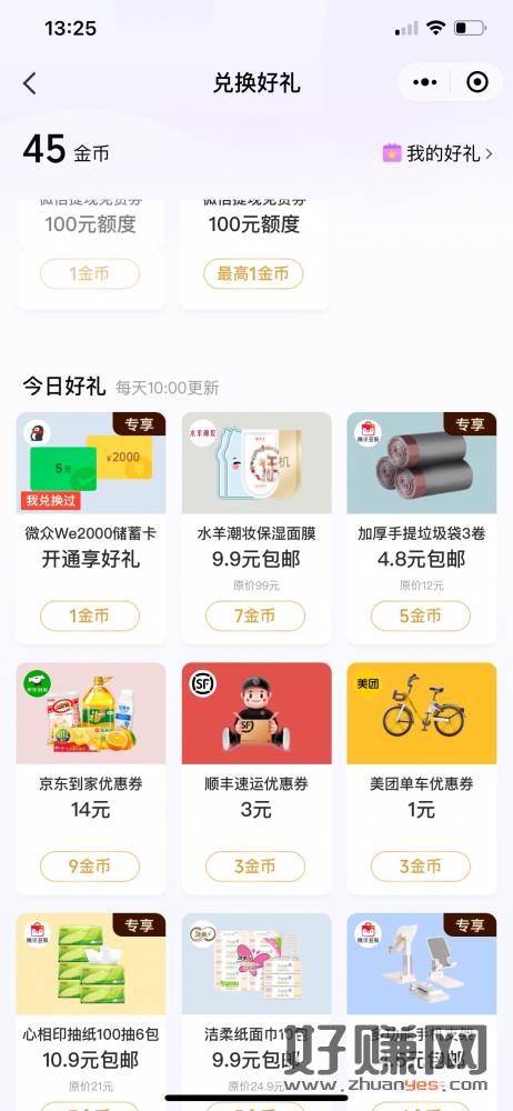 每天红包雨和浏览任务分享任务刷新 换立减金需要下载app