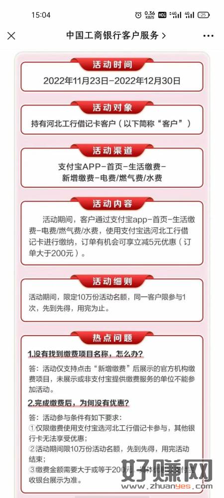 工行[ 缴费有礼 ]水、电、燃气费,河北专享5元优惠!