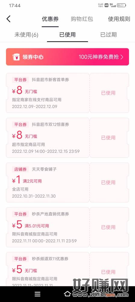 那些没有说明你们在抖音商城超市下过单了,你们看今天我刚领的用完了两张。