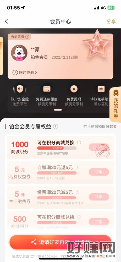 亲测0元霸王茶姬+2元立减金 移动开通话会员领红包