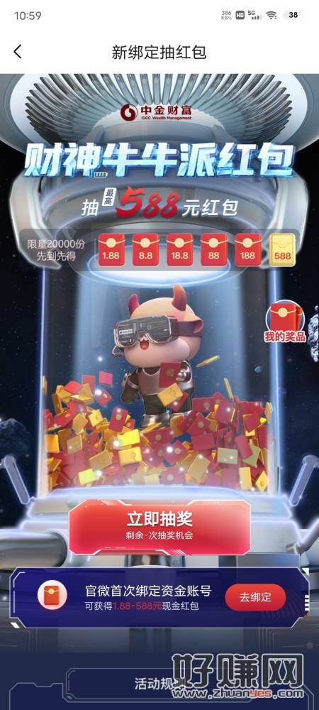 新用户开户,老用户没有绑定过微信的就可以抽,天选之子588,