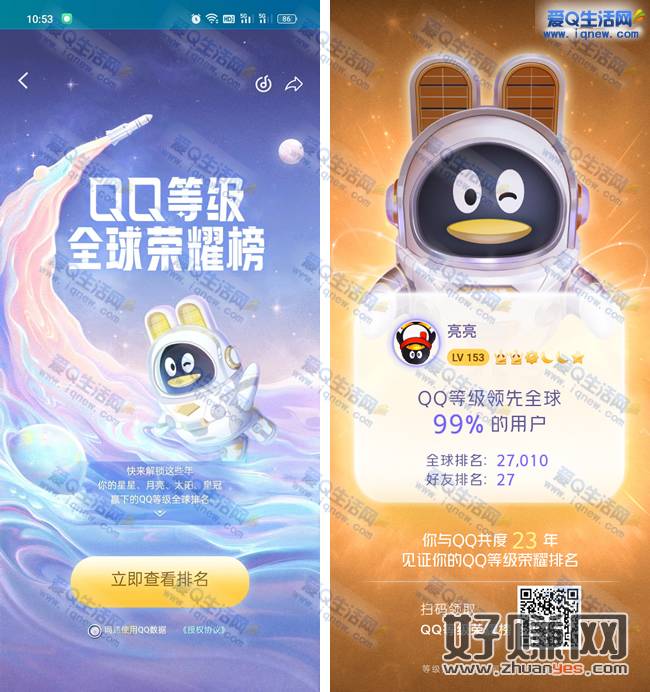 QQ等级荣耀榜单出来了哦,快来看看你在全球排名多少名呢