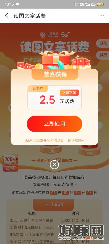 支付宝APP,把下面内容私聊发给自己小号,然后逐一点开12个链接,全部点完后兑换2.5 0.6 0.1,一共可以得3.2块话费直接到账