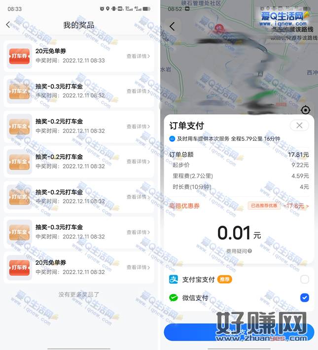 亲测0.01元打车 高德抽20元打车免单券+整点抢券