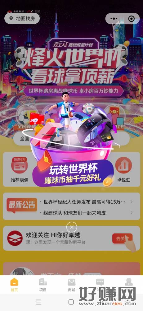微信小程序搜索卓小房,弹窗点进去简单任务抽奖,刚中0.58