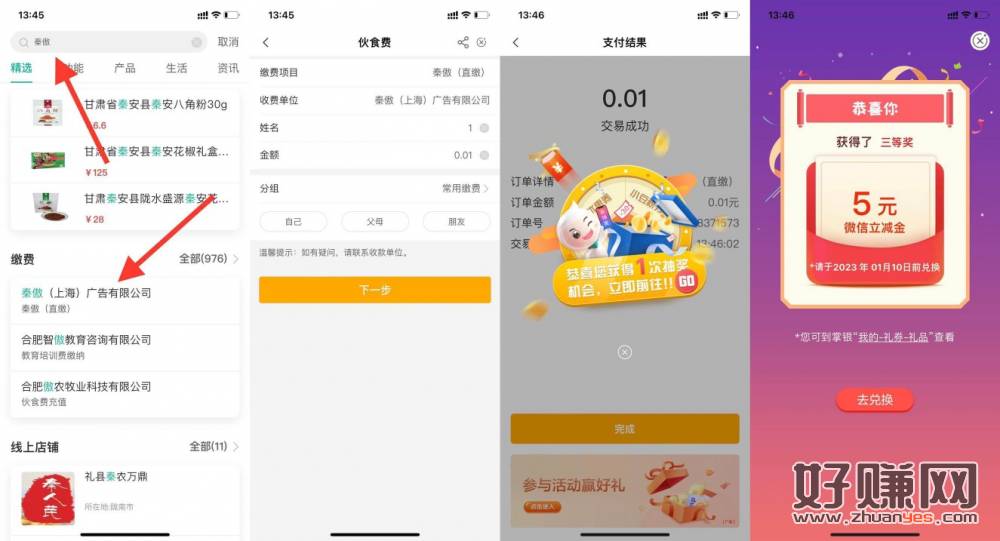 农行领5元立减金秒到 农行搜:秦傲 下拉缴费选第一个 缴伙食