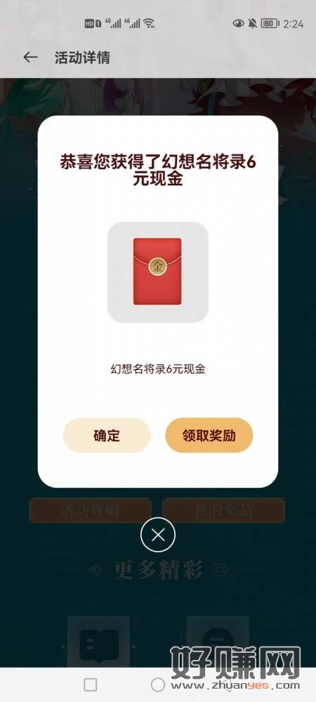 2.进入搜索下载幻想名将录,直接进入活动页面,只需下载就可以抽奖了,有人中了30我中了1元,秒到支付宝