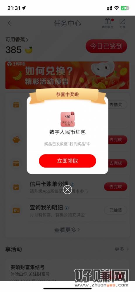 工行完成实时汇购抽30。任务中心那里买满一块钱外汇,不知道是