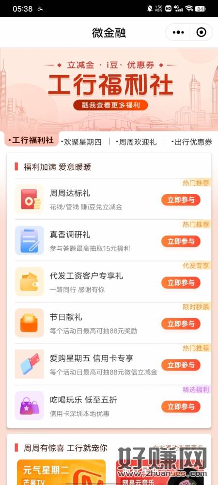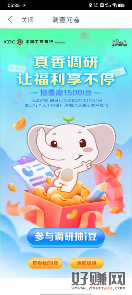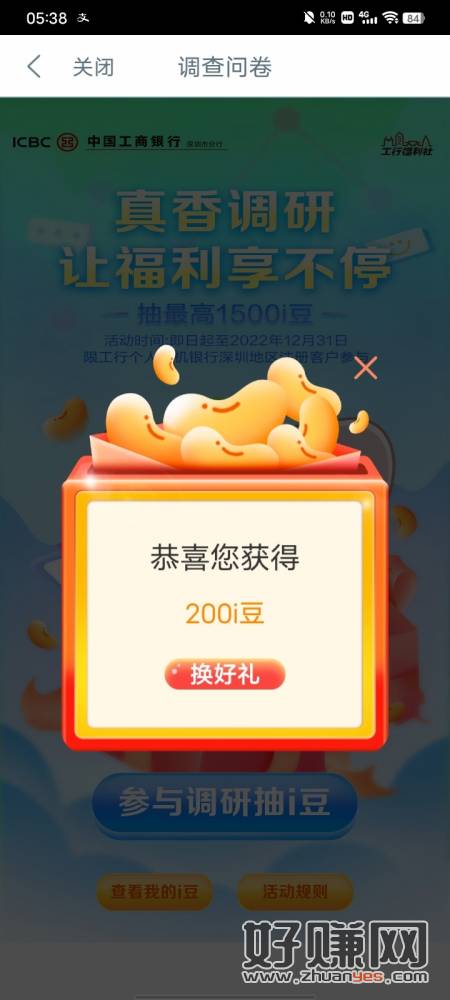 工行微金融,真香调研礼和周周欢迎礼都能中i豆,换立减金,限深圳