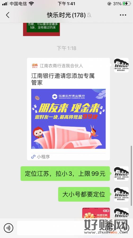大小号都需要定位江苏,号多吃肉。一个号上限99元。小程序搜江南农商行连我合伙人