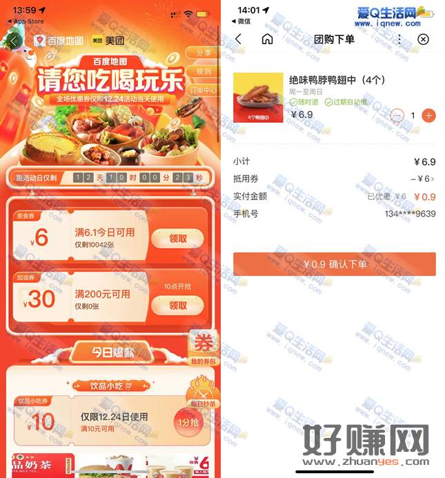 百度地图领6元美食券 可几毛钱吃绝味/奶茶等