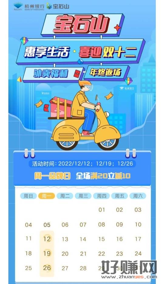 杭州银行,每个周一点外卖减20-10