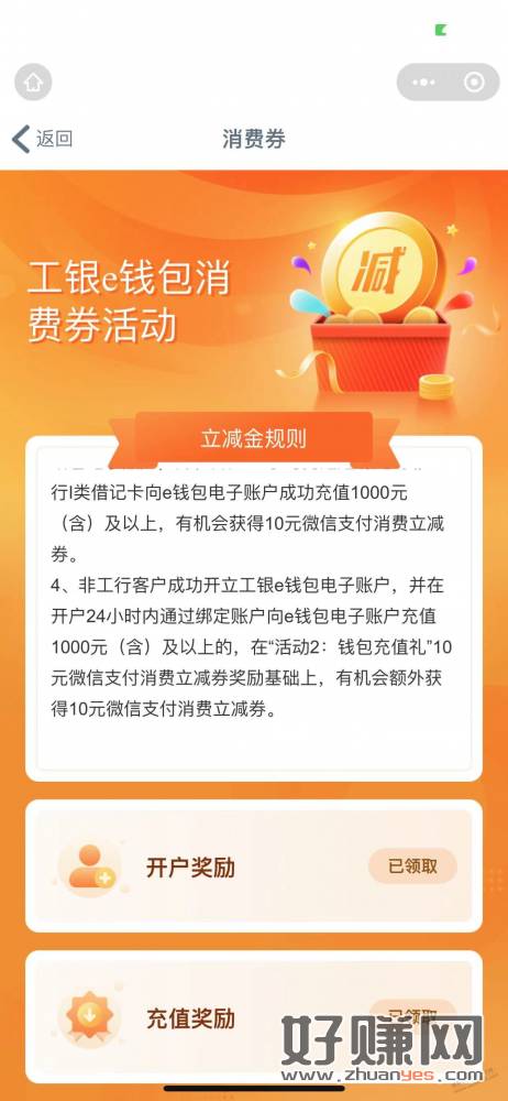 如题,e钱包老户注销再开5毛,充值1000有10毛,工行app改张家口搜消费季20数币,总计35毛