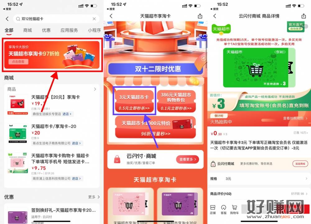 [ 云闪付0.5买3元天猫超市卡 ]云闪付APP搜索“双12抢猫