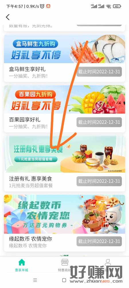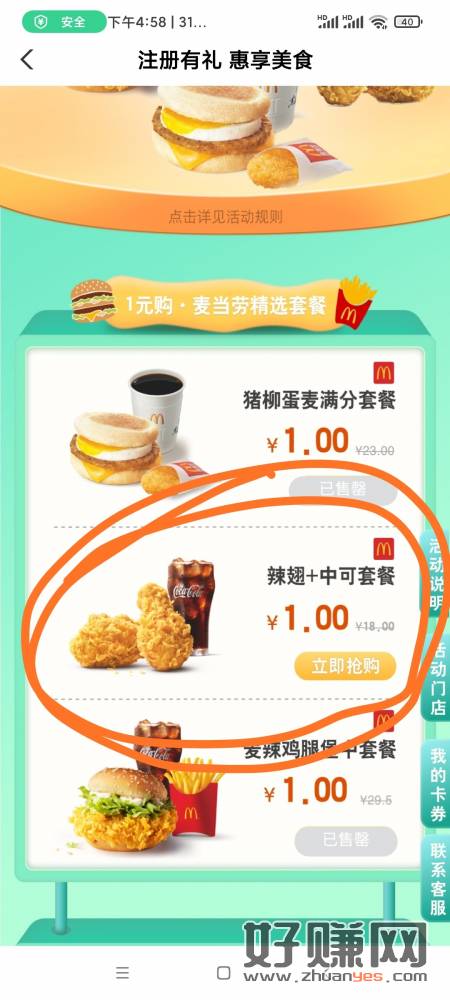 农行飞广东——城市专区广东——恵享羊城——下拉1元抢麦当劳t 餐 支付1元 利润4R 玖玖