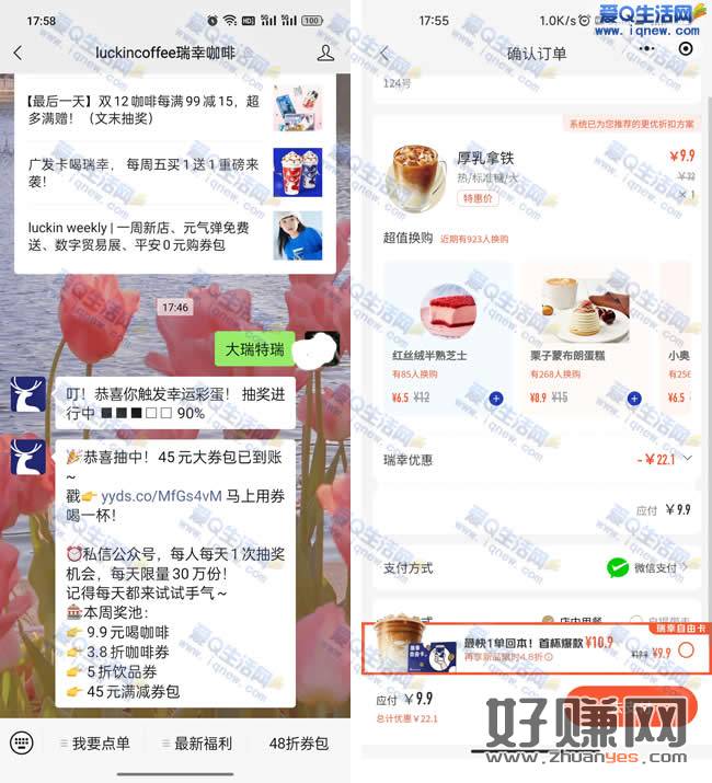 亲测9.9元喝瑞幸咖啡一杯 需要在线抽奖秒开