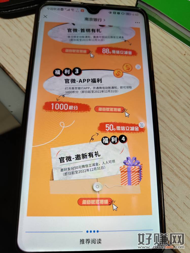 这个是活动地址最后的二维码也是活动地址,前两个有邀请介意的别走一个是关注公众号南京银行,一个是首绑南京银行的