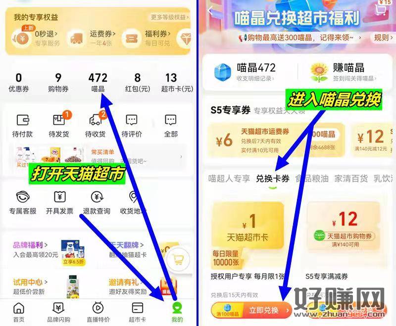 如上图,499积分可兑换3猫超卡,