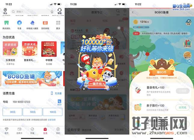 中行APP-搜索【BOBO鱼塘】点击参与活动-2000币+1元可兑换