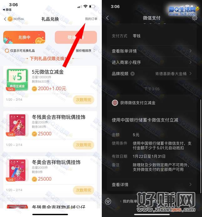 兑换了要去我的订单里面使用才能领取到微信,BO币凑起来还是很快的,领的勤快当天就能完成,只能兑换一次