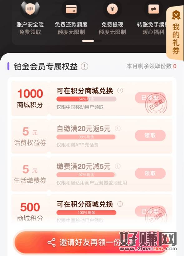 和包app 会员中心之前没领的可以领 今天周四 领过的忽略