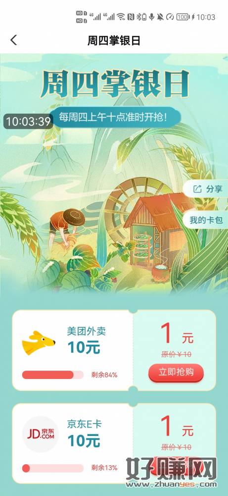 农行飞山东 城市专区除青岛任意一个 周四掌银日一折买e卡 不