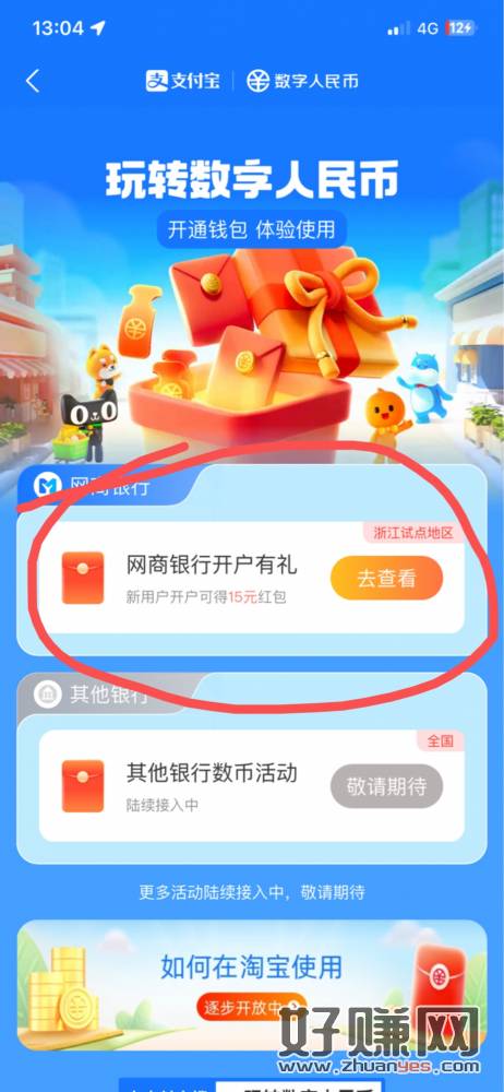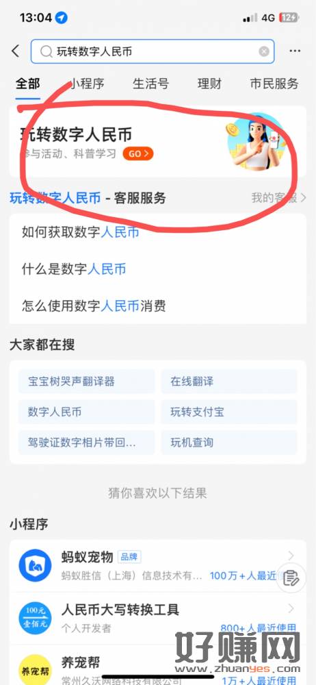 支付宝首页搜索 玩转数字人民币 试试定位飞浙江某地