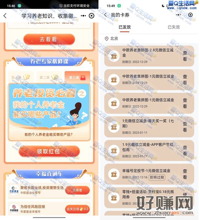 2.下拉至【养老专家必修课】第一课、二课、三课都去看看 最后领取微信立减金奖励