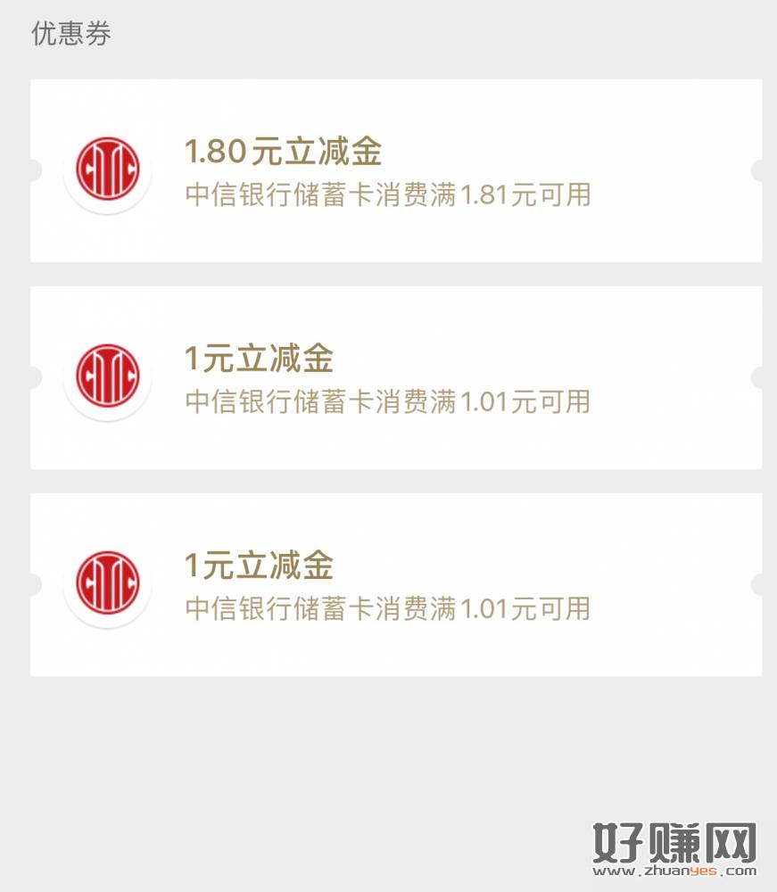 中信银行 如图点进去把任务做完能领三张立减金(点一下返回就