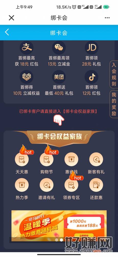 建行app,绑卡会,横幅下拉,天天惠,限制山西地区,每天能抽