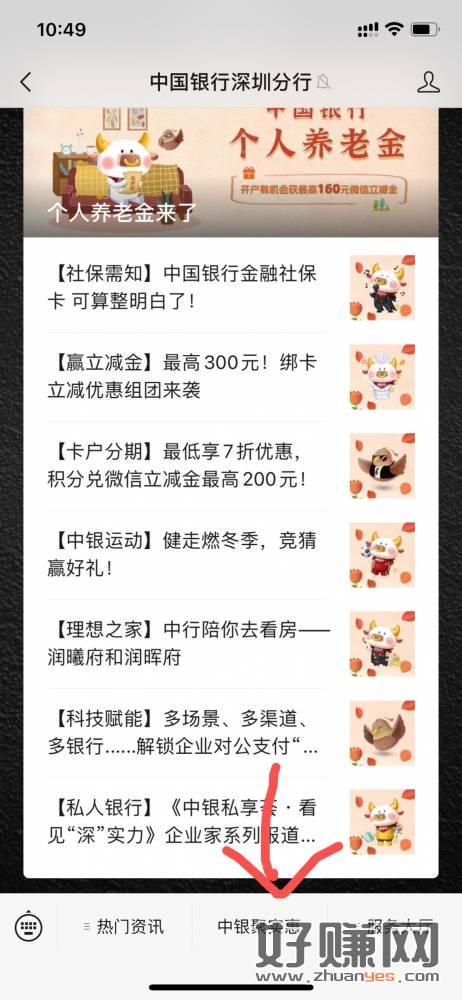 中行 深圳 公众号 底部中间进入 弹窗活动 得立减金 限制深圳卡