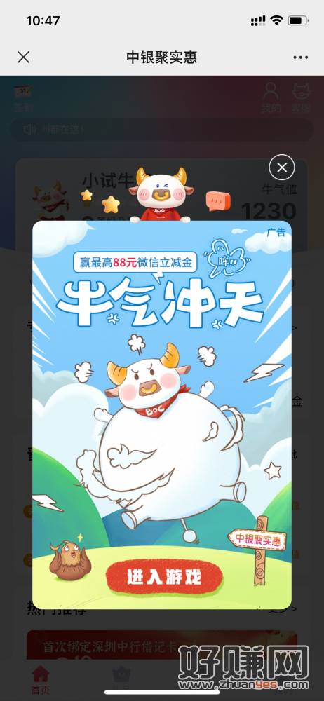 中行 深圳 公众号 底部中间进入 弹窗活动 得立减金 限制深