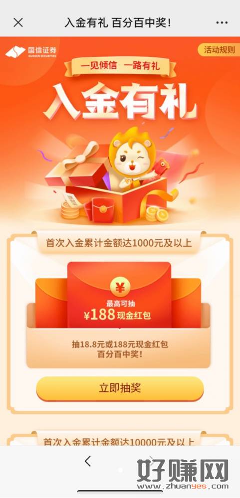 粗!国信证券开户入金1000必得18.8