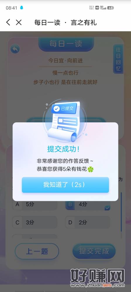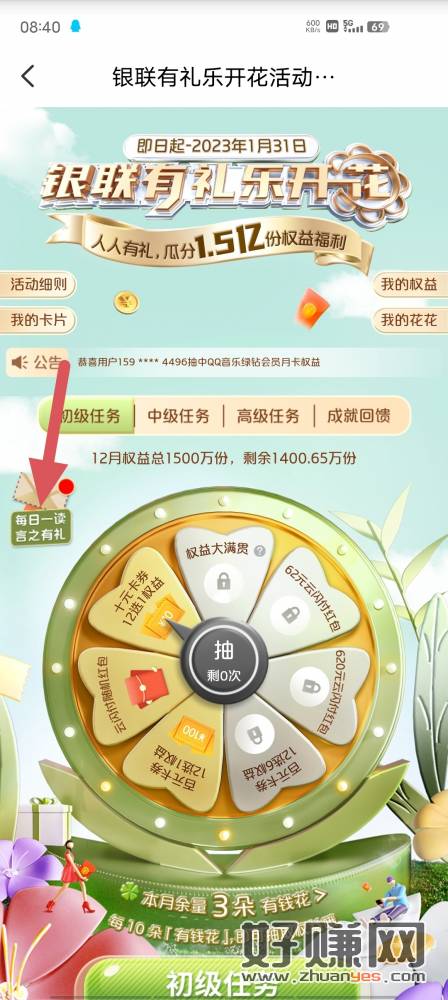 云闪付app搜有礼乐开花,完成问卷5朵花到手