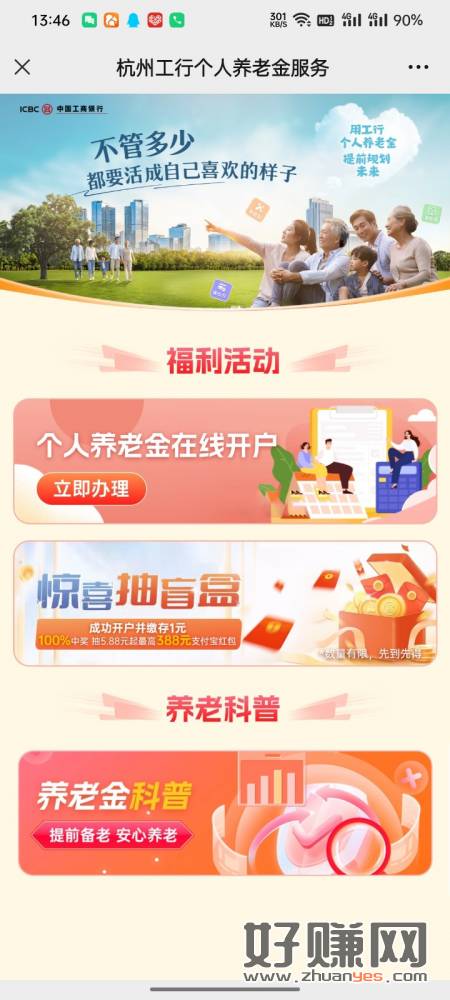 工商银行开通个人养老金的去抽奖(我是在杭州开通的你们自己去试