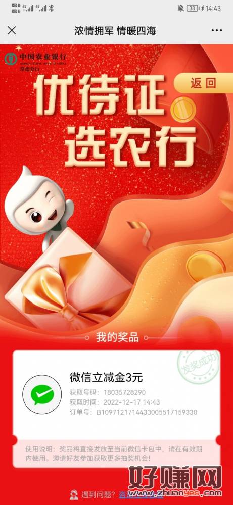 微信打开农行答题抽奖微信立减金