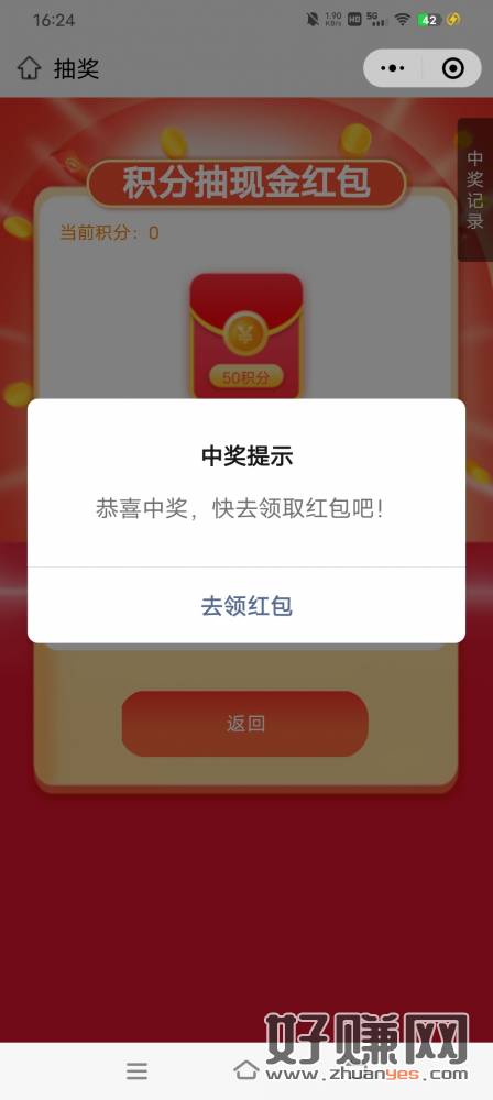 50积分抽奖 中奖率100%